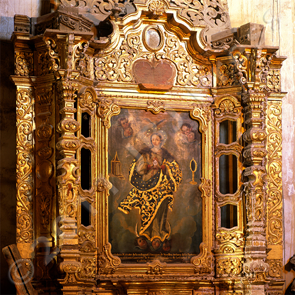 The painting of the Virgin is framed in golden Baroque splendor. The remote church at of Saint Matthew (San Mateo) features a surprising number of highly sophisticated Baroque and Ultra-Baroque altars and paintings.