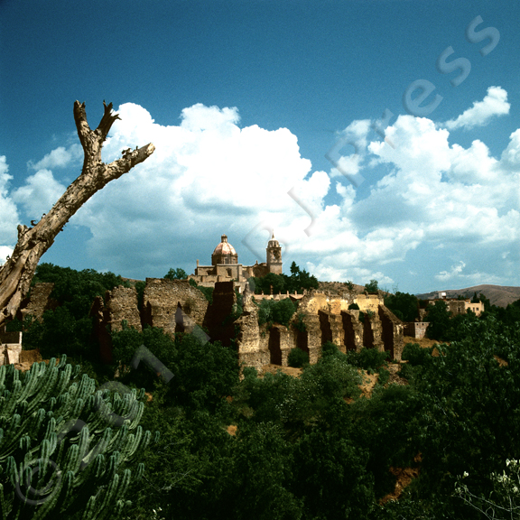 Commonly known as La Valenciana, the church of Saint Cajetan (San Cayetano) is seen across the valley from the silver mine. It was built in 1765-88 and took its name from the mine and its owner, the Conde de Valenciana.