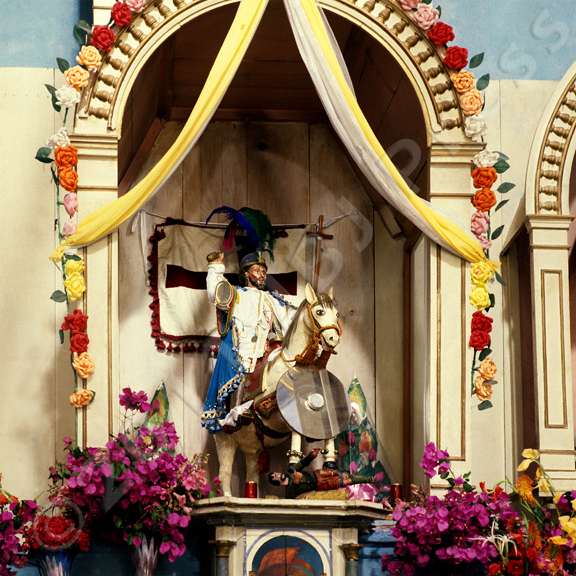In the church bearing his name, Saint James (Santiago) comes charging out of the altar, trampling a moor under the his horses hooves. As the patron saint of Spain and the conquerors, churches of Santiago are always pilgrimage destinations.