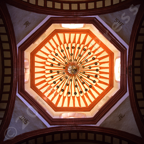 The interior of the dome and a chandelier has been part of the imaginative restoration.